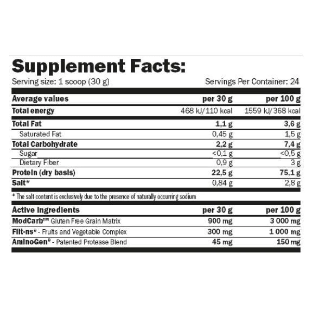 DescripciónGreenDay® VegeFiit Protein de Amix es un suplemento en polvo que contiene una mezcla de proteínas de origen vegetal compuesta por aislado de proteína de guisante Pisane®, proteína de arroz y proteína de soja enriquecida con ModCarb™, una mezcla de 5 carbohidratos de granos saludables y sin gluten AminoGen®, una combinación de enzimas de origen vegetal y Fiit-ns®, una combinación patentada de extractos naturales con propiedades antioxidantes.GreenDay® Vegefiit Protein es la solución definitiva para todas aquellas personas que buscan una proteína de alta calidad y que sea 100% de origen vegetal.GreenDay® Vegefiit Protein te proporciona un 75% de proteínas de origen vegetal, sin modificaciones genéticas, sin gluten y sin lácteos. Por fin tienes a tu alcance una fuente de proteínas alternativa, de alta calidad y altamente saludable.Beneficios Principales beneficios de GreenDay® VegeFiit Protein de Amix: - Una fuente de proteínas alternativa, de alta calidad y altamente saludable. - Contiene una mezcla de proteínas de alta calidad y que sea 100% de origen vegetal. - Combina aislado de proteína de guisante Pisane®, proteína de arroz y proteína de soja. - Enriquecida con ModCarb™, una mezcla de 5 carbohidratos de granos saludables y sin gluten. - Con AminoGen®, una combinación de enzimas de origen vegetal. - Con Fiit-ns®, una mezcla patentada de extractos naturales con propiedades antioxidantes.IngredientesMezcla proteica vegetal 87% (aislado de proteína de guisante Pisane®, proteína de arroz, proteína de soja) cacao en polvo, ModCarb™ (salvado de avena sin gluten, quinoa, amaranto, alforfón, mijo), extractos y concentrados de frutas y hortalizas Fiit-ns® (extracto de té verde, extracto de guaraná, extractos de uva roja y blanca, extracto de pomelo, extracto de zanahoria negra, nicotinamida), aroma, mezcla patentada de proteasa AminoGen® (maltodextrina, proteasas), edulcorantes: glicósidos de esteviol, sucralosa y acesulfamo-K. Advertencia de alérgenos: Puede contener trazas de leche, huevos, gluten, marisco, nueces y cacahuetes debido a los métodos de fabricación.Modo de empleoComo suplemento dietético para adultos sanos, mezclar un servicio de 30 gramos (1 dosificador raso) con 250 ml de agua en una batidora manual o eléctrica y agitar durante 30 segundos y tomar entre las comidas principales. PresentaciónEnvase de 2000 gramos.LegalInformación General de Seguridad de Productos UEMarca: Amix Nutrition Nombre del Fabricante: LargeLife Ltd. País del Fabricante: United Kingdom Dirección Postal del Fabricante: Enterprise House, 2 Pass Street, Oldham, Manchester, OL9 6HZ Correo Electrónico del Fabricante: [email protected] Teléfono del Fabricante: +44123456789 Persona Responsable en la UE: Amix Levante, S.L. Dirección Postal del Representante en la UE: Calle Irlanda, 12, Polígono Industrial Las Maromas, Almoradí, Alicante Correo Electrónico del Representante en la UE: [email protected] de Seguridad: - Mantener fuera del alcance de los niños. - No exceder la dosis diaria recomendada. - Consultar con un profesional de la salud antes de usar si está embarazada, amamantando, tomando medicación o tiene alguna condición médica. - Este producto no está destinado a diagnosticar, tratar, curar o prevenir ninguna enfermedad. - Puede contener trazas de gluten, soja, leche, huevos, pescado, crustáceos, frutos secos y cacahuetes.